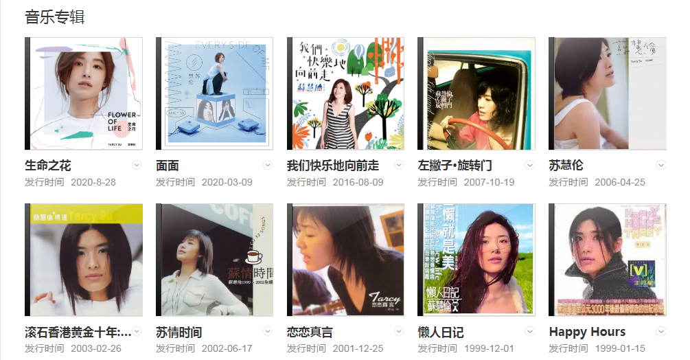 代表作品:鴨子、面面、戀戀真言、Lemon Tree、傻瓜、黃色月亮、在我生命中的每一天、被動、追得過一切、左撇子、天下大亂、我一個人住、流浪神狗人