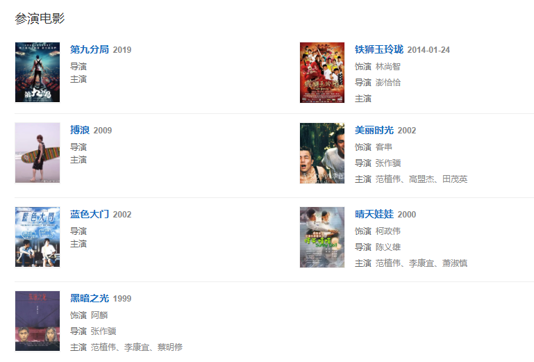 代表作品:廉政英雄、新兵日記、花非花霧非霧、一克拉夢(mèng)想、哇!陳怡君