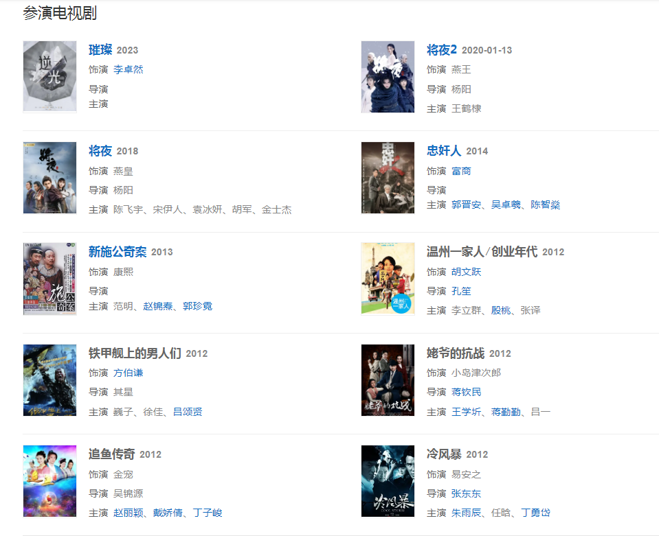 2004年,在電視劇《大唐雙龍傳》中飾演奸角宇文化及 。