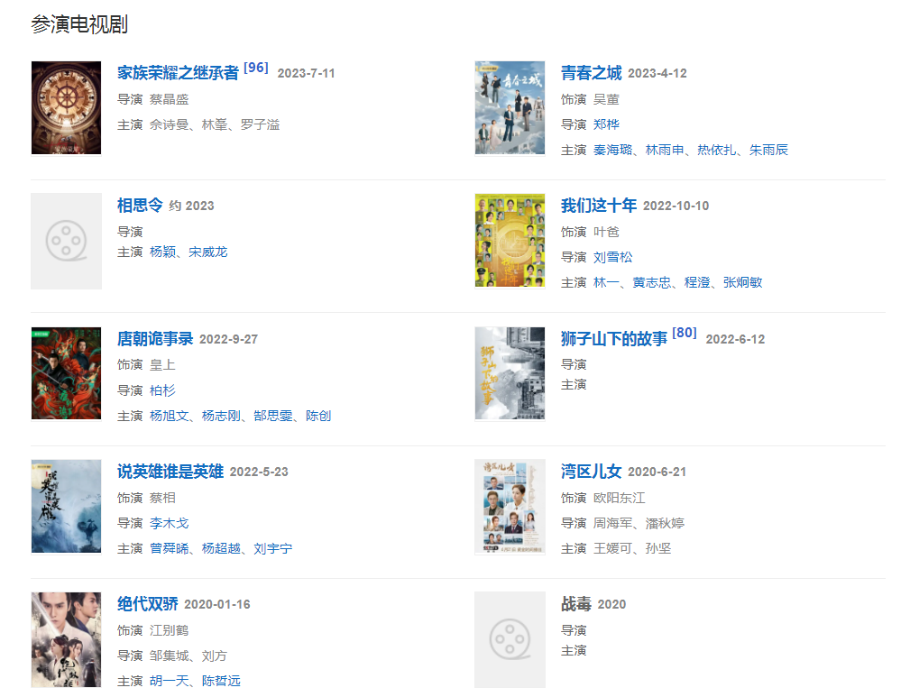 2023年1月31日,友情出演的網(wǎng)劇《相思令》開機(jī);4月28日,參演的電影《驚天救援》上映;4月12日,參演電視劇《青春之城》播出。7月6日,出演的電影《掃毒3:人在天涯》上映。
