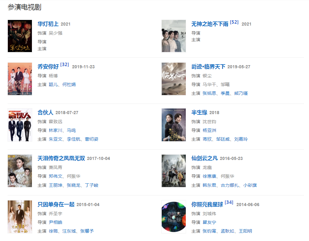 2021年,參演電視劇《無神之地不下雨》;參演電視劇《華燈初上》。