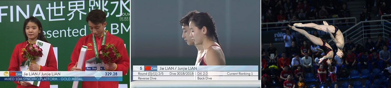 2017年3月11日,在國(guó)際泳聯(lián)世界跳水系列賽廣州站男女混合雙人十米臺(tái)決賽中,中國(guó)選手連婕/練俊杰以355.08分的總成績(jī)奪冠。